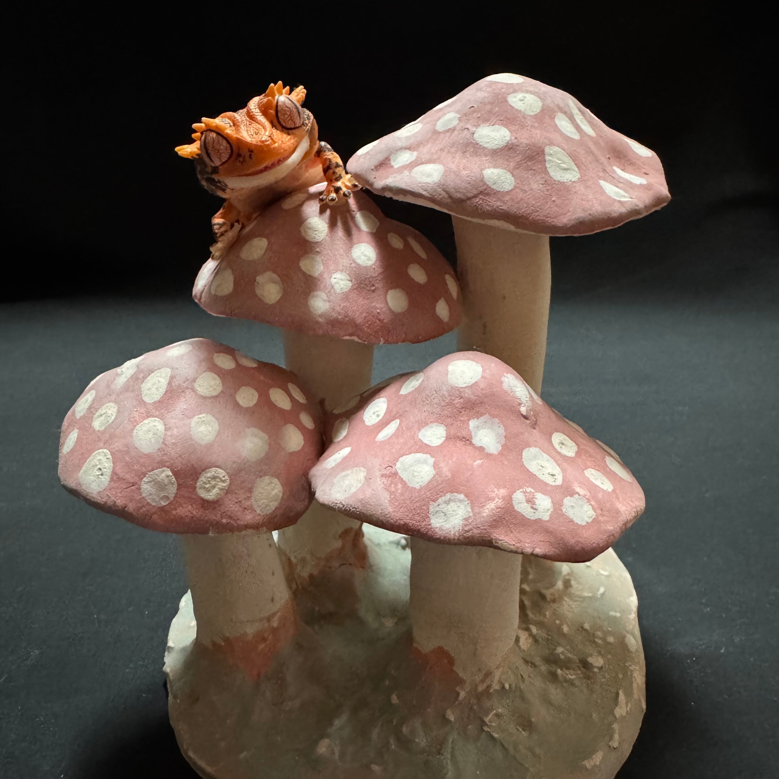 キノコをモチーフにした、陶器製の爬虫類用シェルターです。
