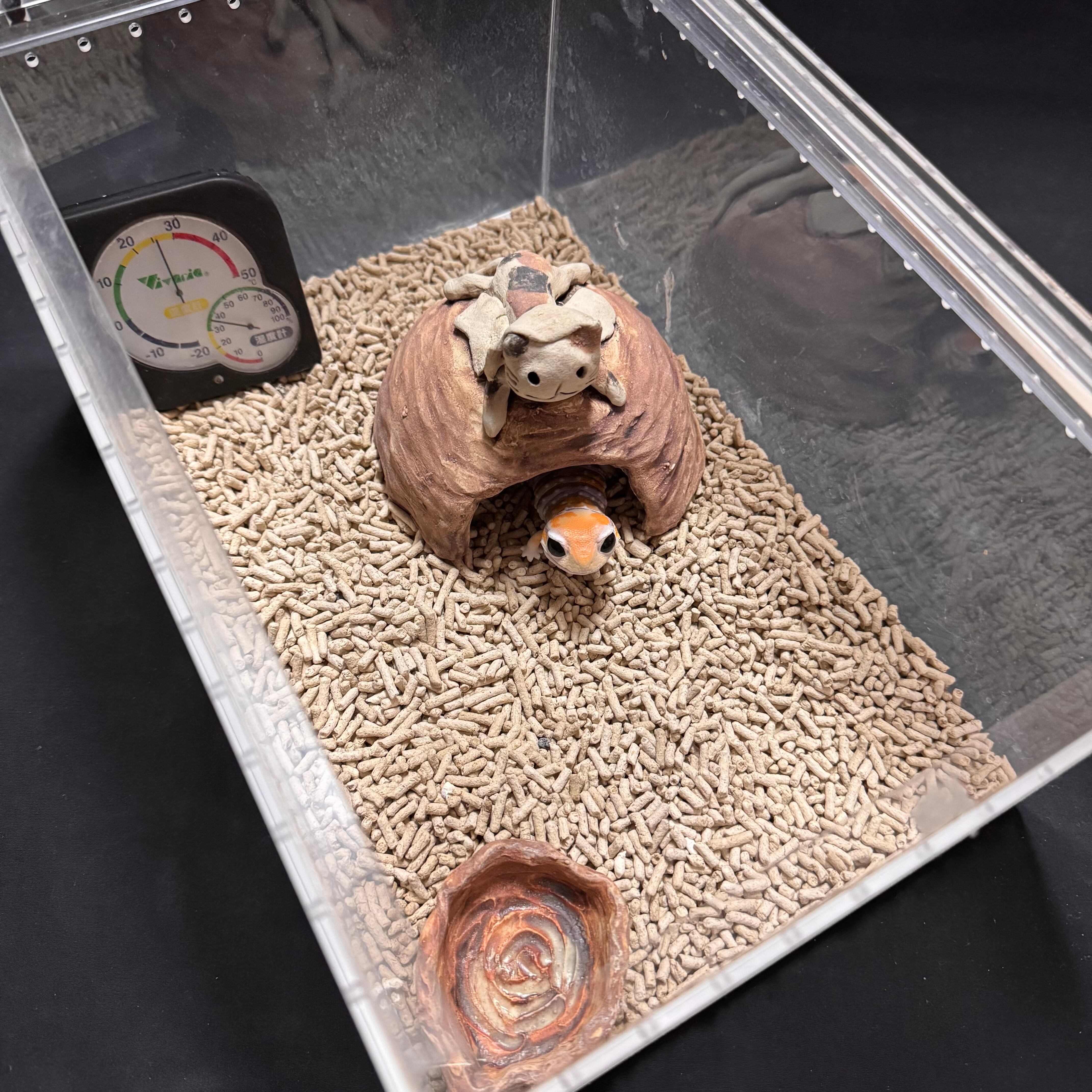 レオパードゲッコー(ヒョウモントカゲモドキ)やニシアフリカトカゲモドキ(ニシアフ)向けに製作していますが、クレステッドゲッコー、シシバナヘビ、コーンスネーク、カエル、イモリ、タランチュラやムカデ等の奇虫など、幅広くお使いいただいています。