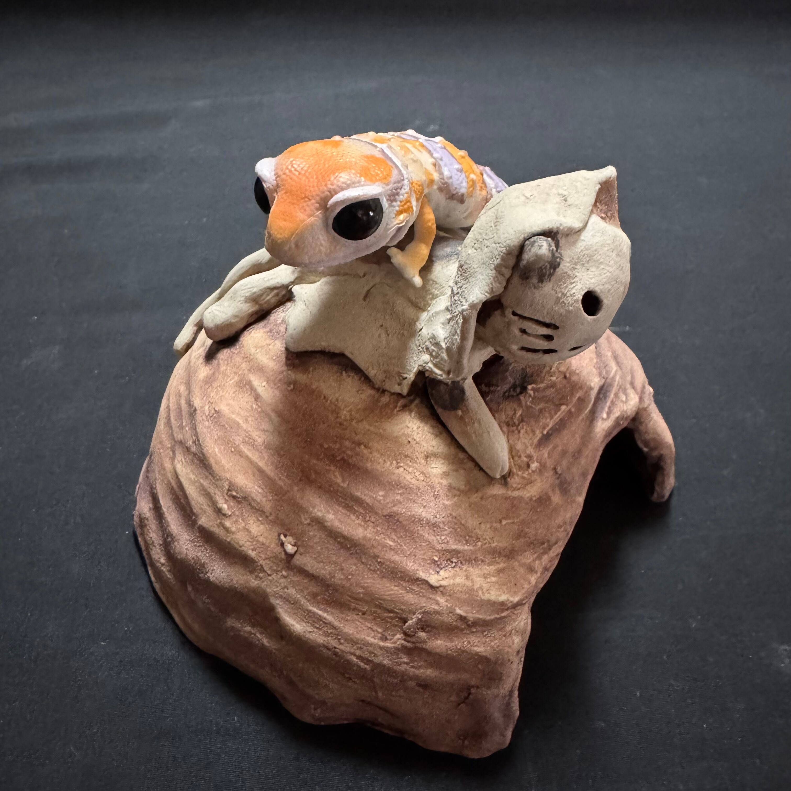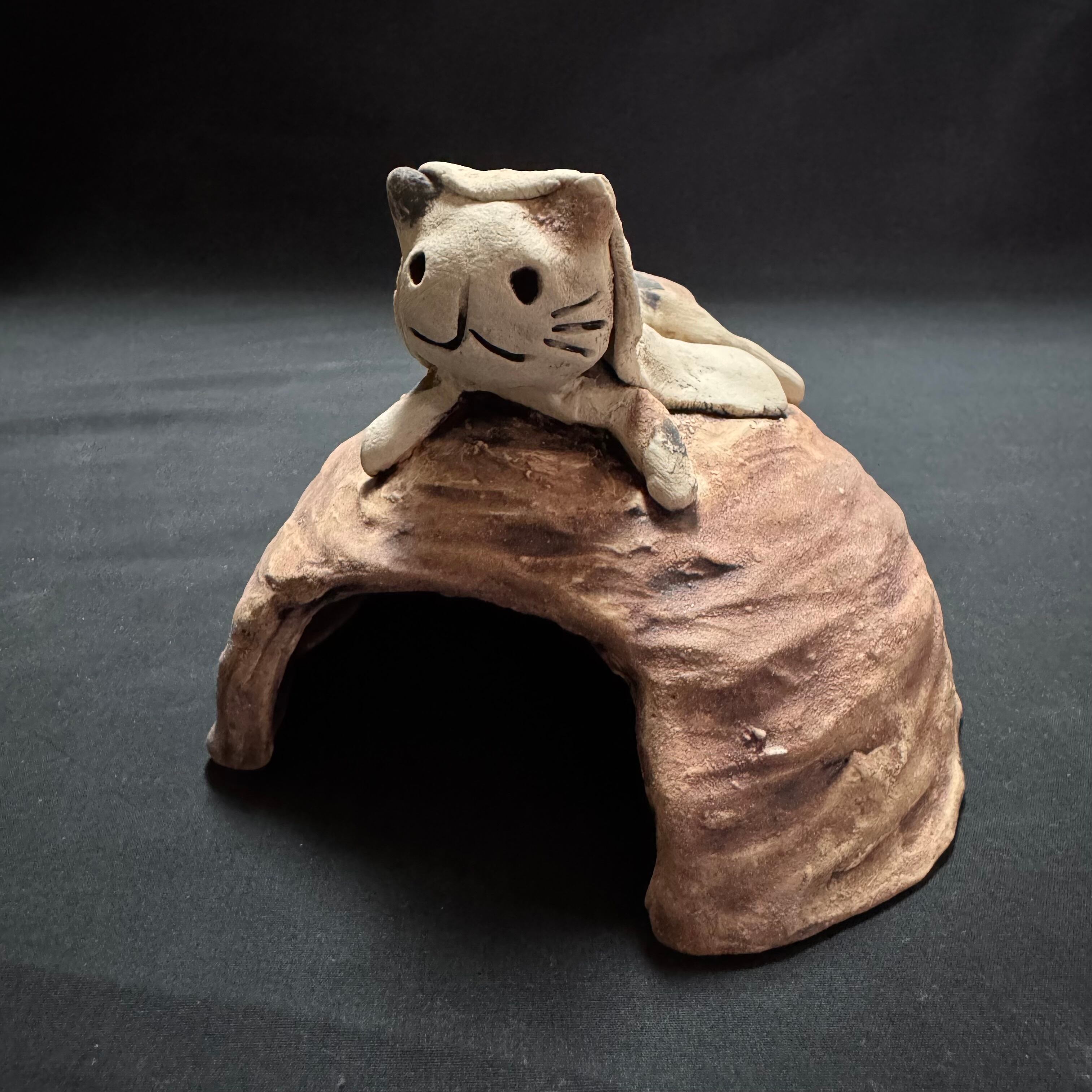 爬虫類用シェルター Mサイズ 寝そべる猫又さんver