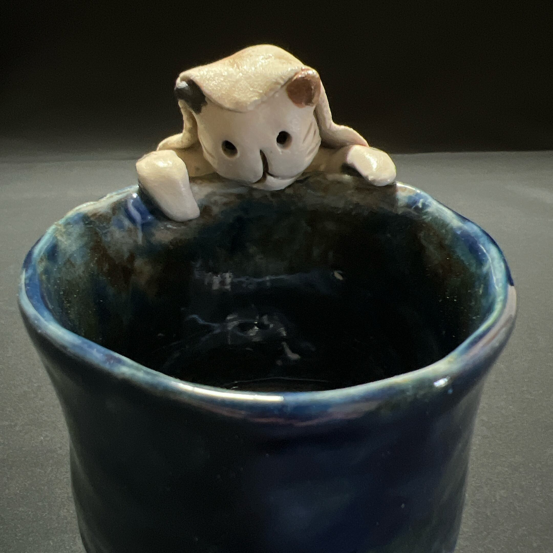 猫又が覗き込んでる湯飲み茶碗 妖怪陶器