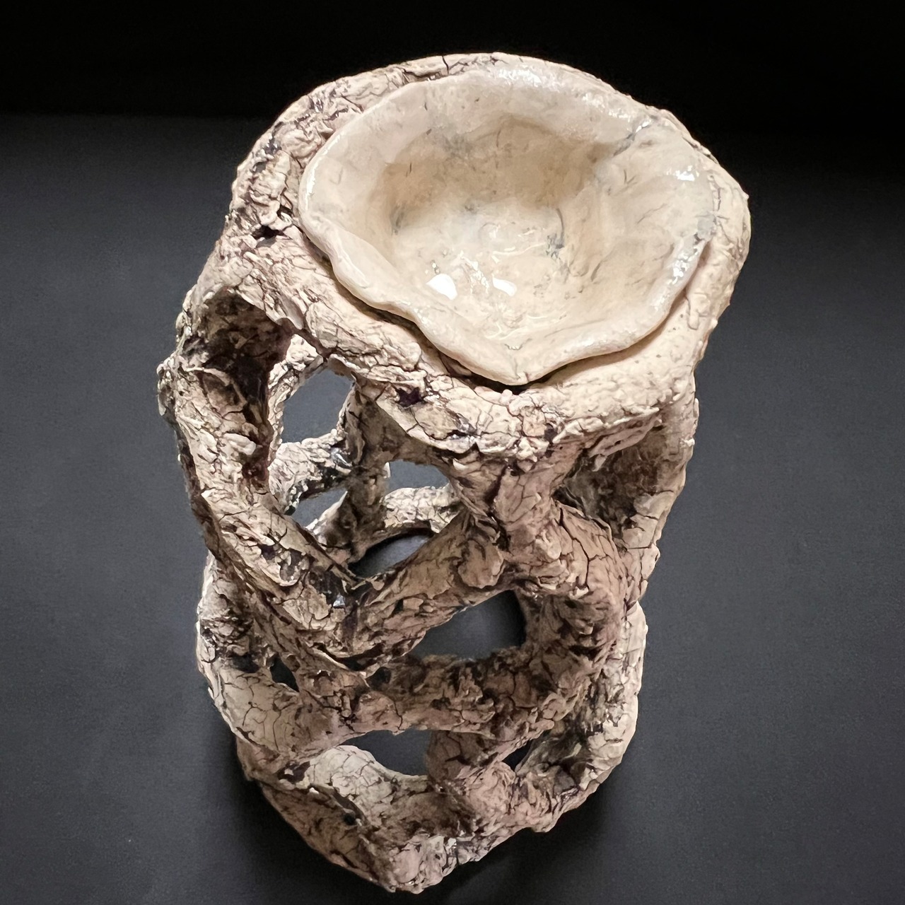 陶器で流木の雰囲気を醸し出しつつ、自然界にありそうでない形状となっています。