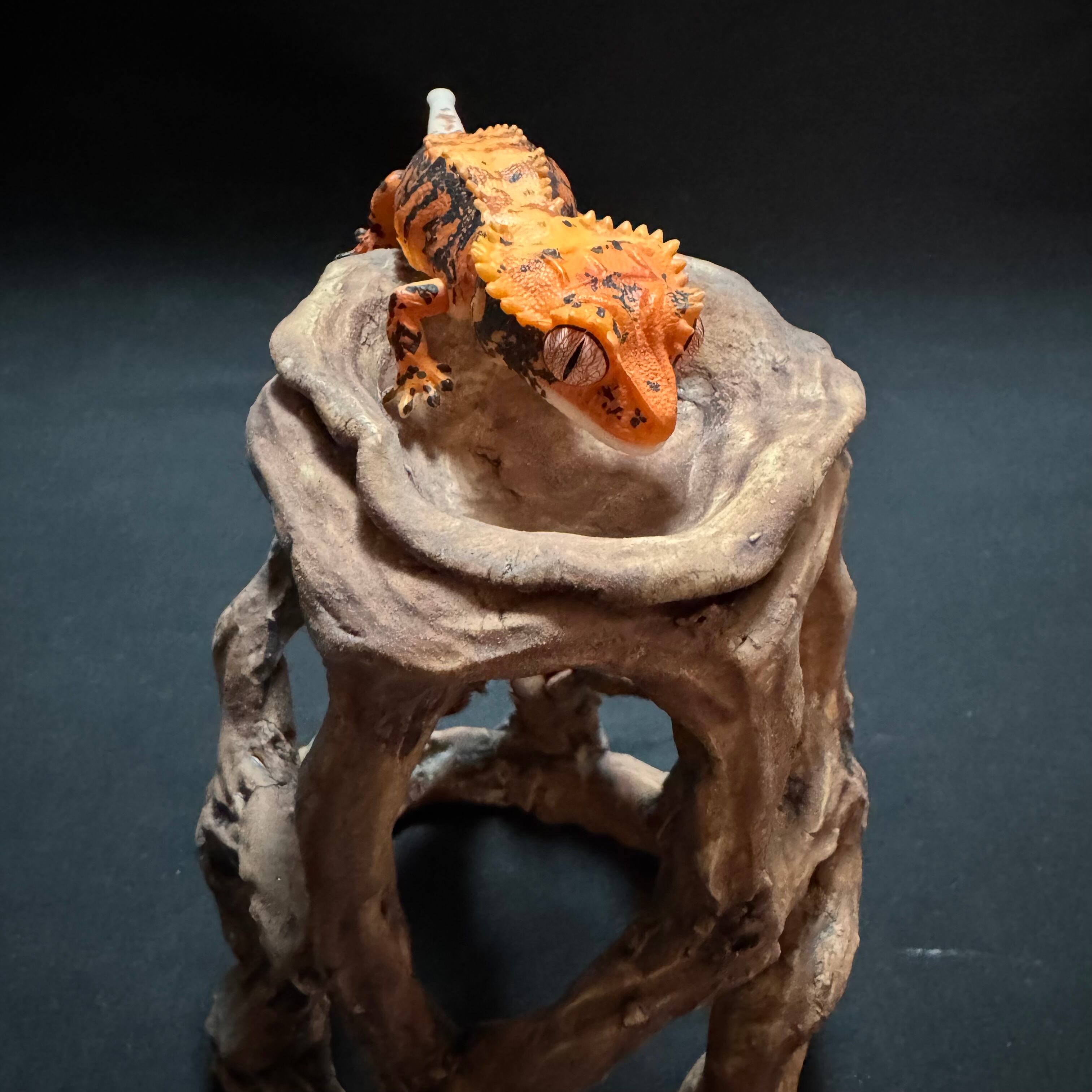 流木のような形状の爬虫類シェルターで、水入れが取り外せるようになっています。